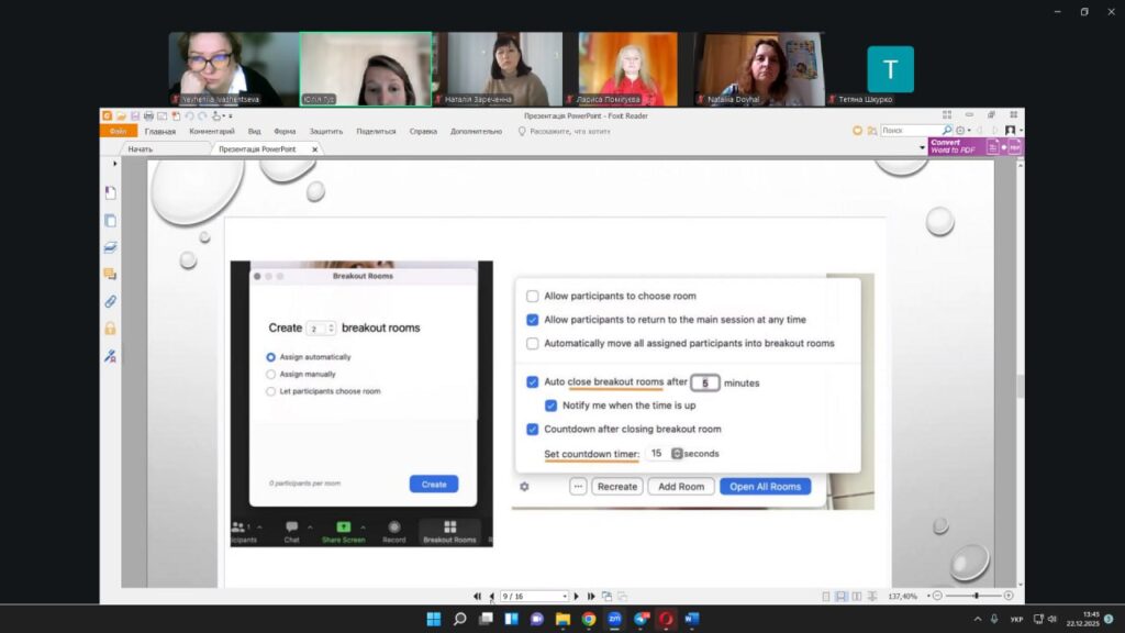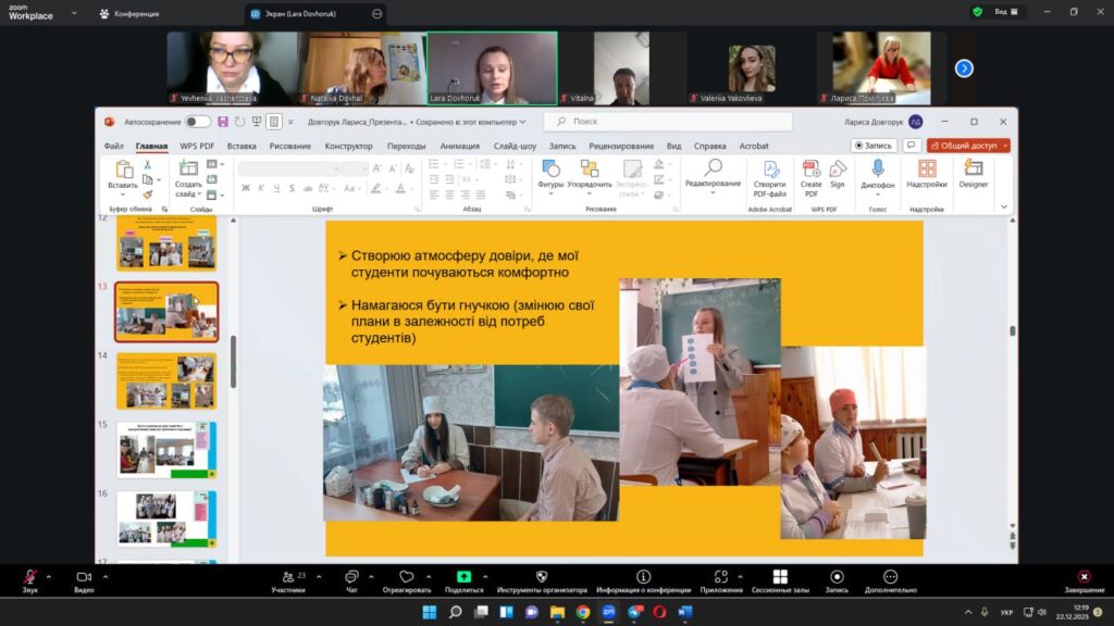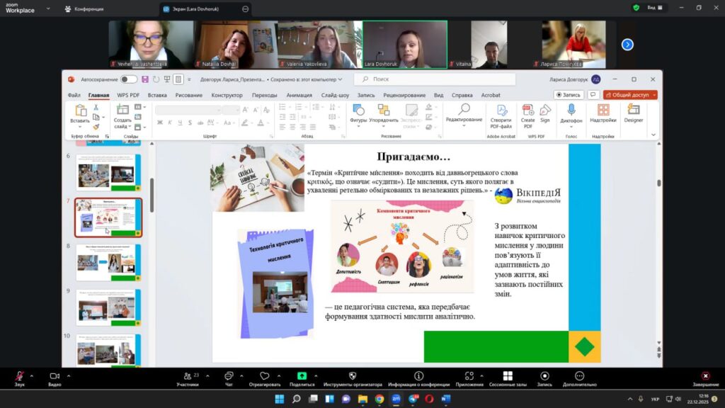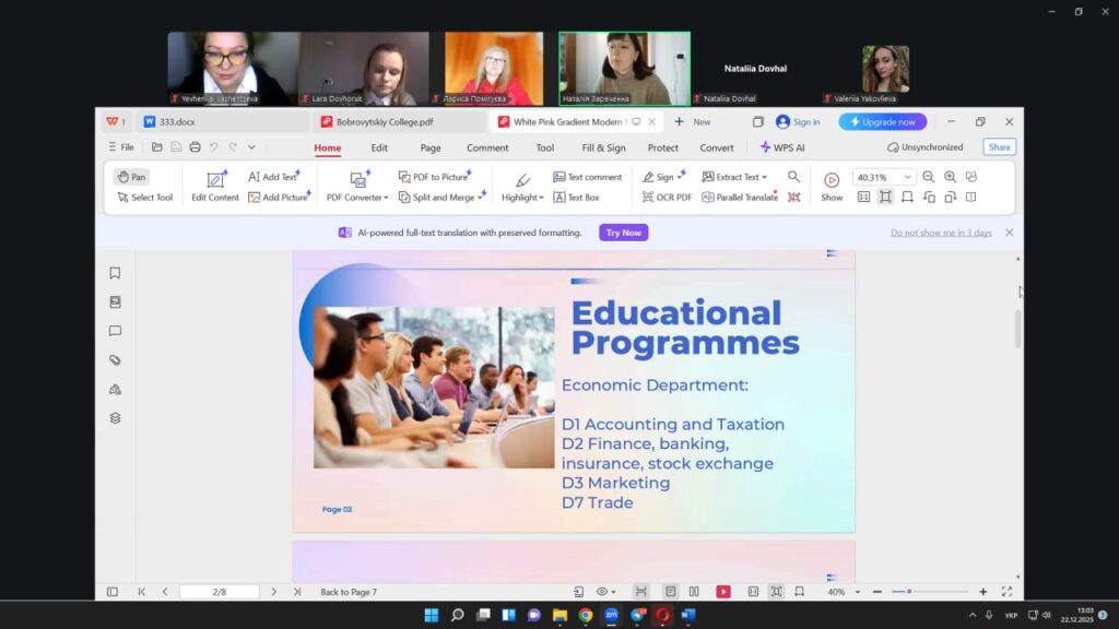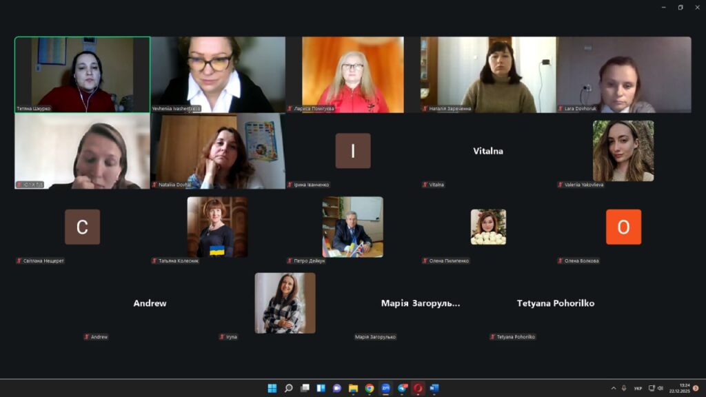 22 грудня 2025 року відбулося засідання методичного об’єднання викладачів іноземної мови закладів фахової передвищої освіти Чернігівської області. Засідання проходило під головуванням Євгенії ІВАШЕНЦЕВОЇ, голови ОМО викладачів іноземної мови, яка обговорила ключові завдання роботи викладачів іноземних мов. У роботі засідання взяли участь викладачі іноземних мов закладів фахової передвищої освіти області. У межах марафону освітніх інсайтів, освітяни презентували власний досвід упровадження інноваційних педагогічних технологій.  Викладачі іноземних мов коледжу Лариса ПОМІГУЄВА, Ірина МАЗЕПА, Юлія ПОПЕНКО обговорили питання оновлення змісту навчальних програм, впровадження компетентнісного підходу, розвитку мовленнєвих навичок здобувачів освіти, використання цифрових ресурсів та інноваційних методик навчання. Учасники відзначили актуальність порушених питань, практичну цінність представленого досвіду та доцільність подальшого обміну інноваційними напрацюваннями з метою підвищення якості викладання іноземних мов у закладах фахової передвищої освіти Чернігівської області.