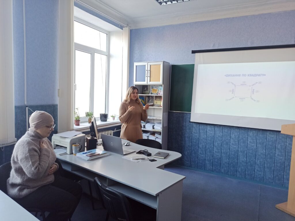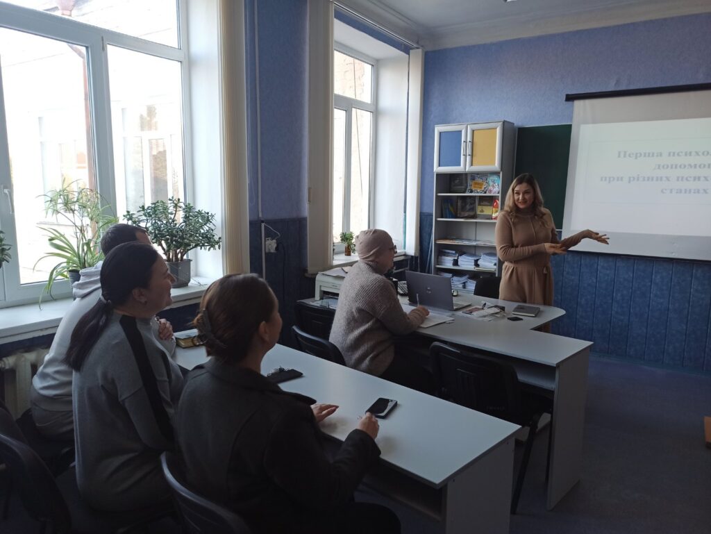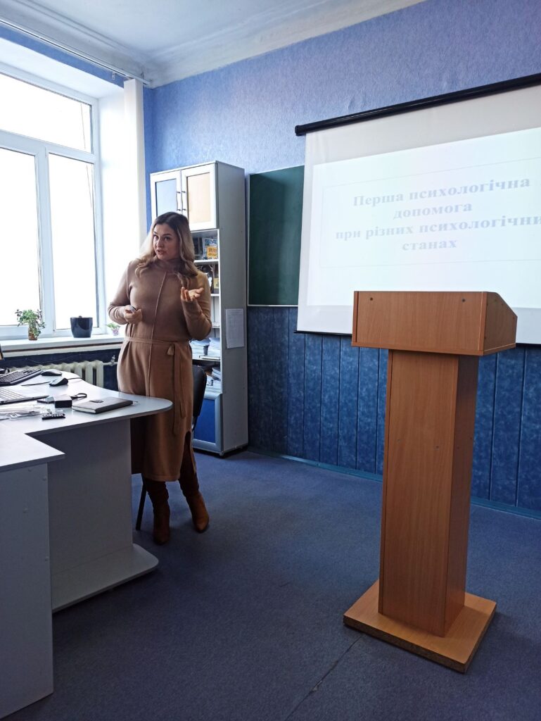 Запит на розширення репертуару прийомів психологічної допомоги здобувачам освіти є актуальним у наш час, що зумовлено підвищеним рівнем тривожності й зниженням стресостійкості учасників освітнього процесу через воєнну агресію рф в Україні. Тренінг «Перша психологічна допомога студентам при гострих станах», проведений практичним психологом коледжу Юлією Кандіною, мав на меті ознайомити педагогічних працівників через практичні вправи й конкретні ситуативні кейси із способами вирішення складних психологічних ситуацій, що можуть виникати під час навчання.