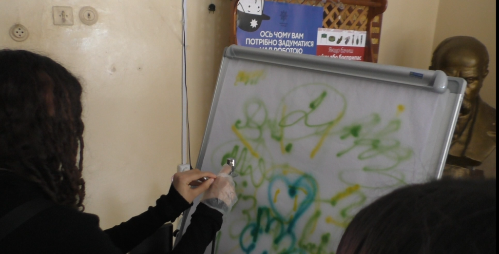 Локація «Арт-терапія за допомогою аерографа» поєднала технічні навички з творчим самовираженням. Учасники дізналися про техніку роботи з аерографом, особливості нанесення фарби та створення художніх композицій. Ця локація продемонструвала, як технології можуть сприяти розвитку креативності, емоційної стабільності та художнього смаку.