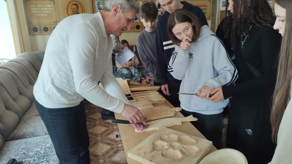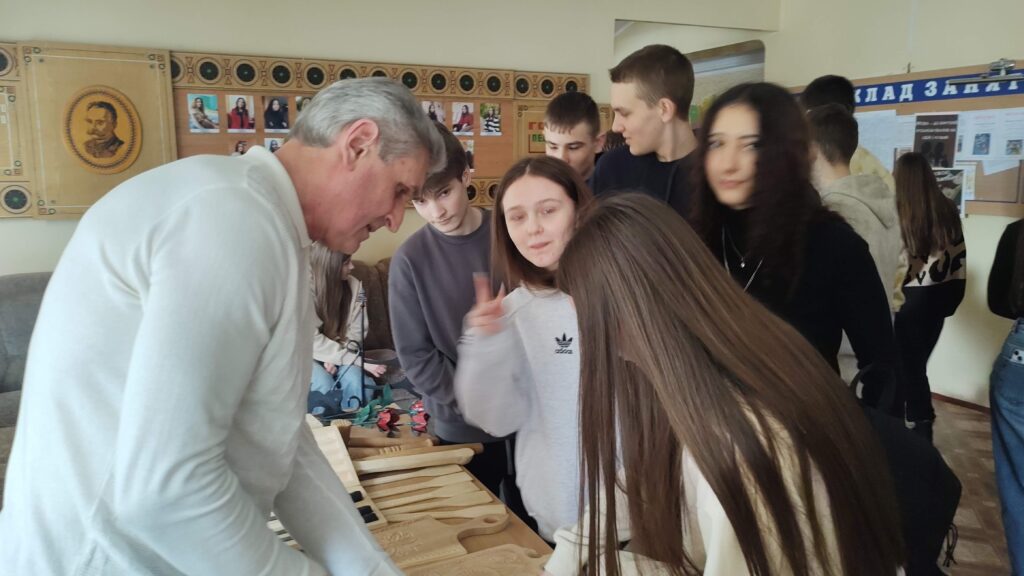 Локація «Обробка деревини» дала змогу побачити процес створення виробів із натуральних матеріалів. Школярі не тільки дізналия про різьблення та оздоблення дерев’яних виробів, а також про можливості поєднання традиційних технік із сучасними технологіями, власноруч спробували виконати елементи оздоблення на заготовці й візуально побачити результат своєї праці.