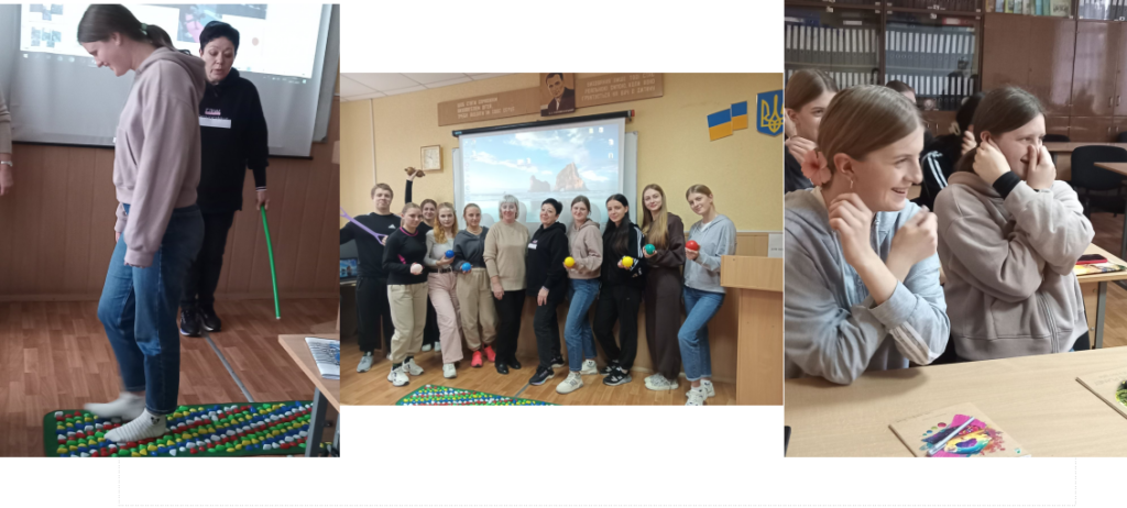 Вчитель початкових класів Лариса Онищенко провела майстер-клас по виконанню нейровправ для дітей, а також ознайомила майбутніх вчителів з дихальними та релаксаційними вправами, які використовує у своїй роботі.