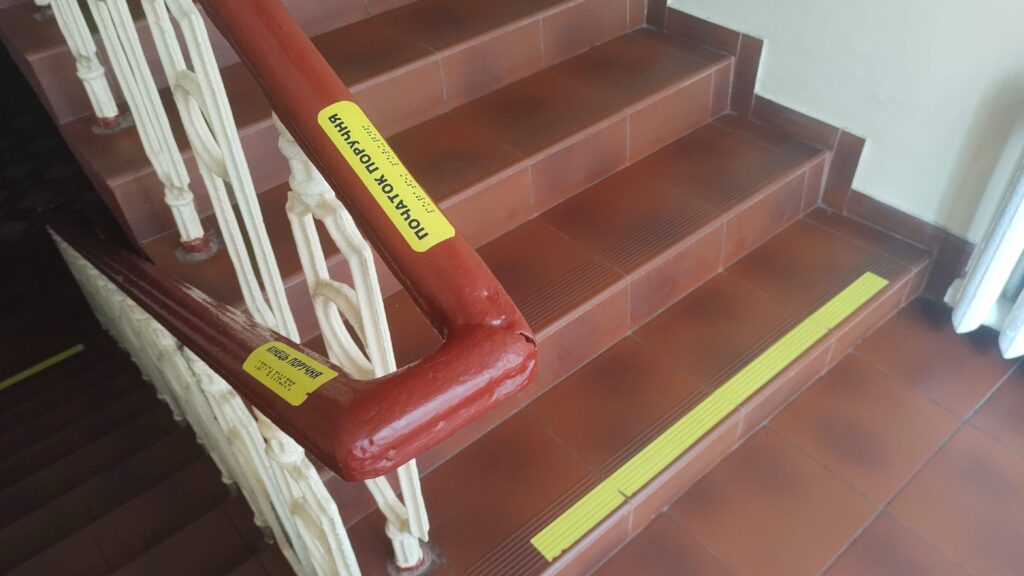 На вході до коледжу облаштовано пандус, що забезпечує зручний доступ для людей з особливими потребами. Поруч із входом встановлено кнопку виклику, за допомогою якої можна звернутися по допомогу до працівників закладу. Також на вході розміщено табличку зі шрифтом Брайля, що дозволяє людям із порушеннями зору отримати необхідну інформацію про заклад.