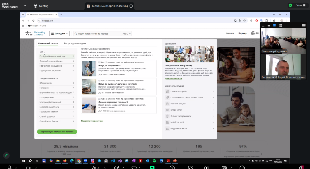 Студенти дізналися про доступ до якісних, практично-орієнтованих навчальних матеріалів (мережеві технології, кібербезпека, програмування), які відповідають світовим стандартам.