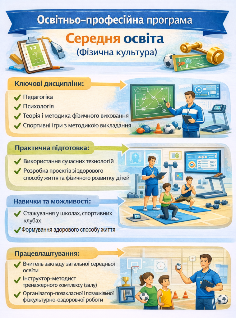 Освітньо-професійні програми (Середня освіта (Фізична культура)) Освітньо-професійна програма (з 01.09.2025 р.) Освітньо-професійна програма (з 01.09.2023 р.) Освітньо-професійна програма (з 01.09.2022 р.) Освітньо-професійна програма (з 01.09.2020 р.)