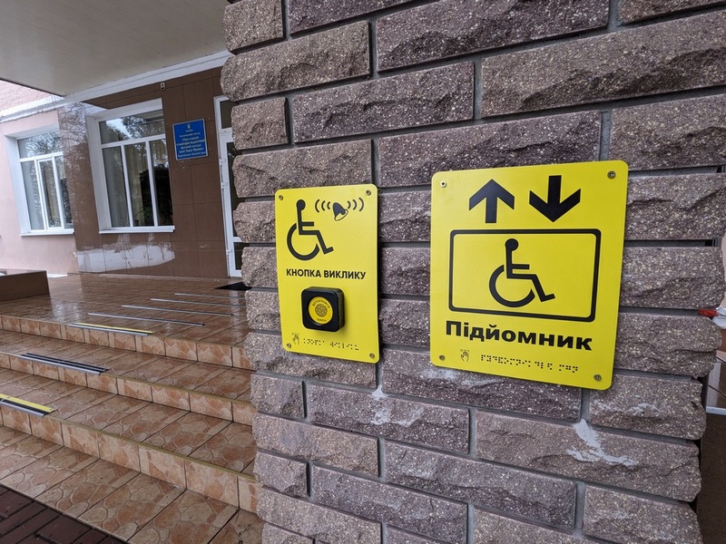 - навчальний корпус облаштований кнопками виклику чергового, пандусами на вході;