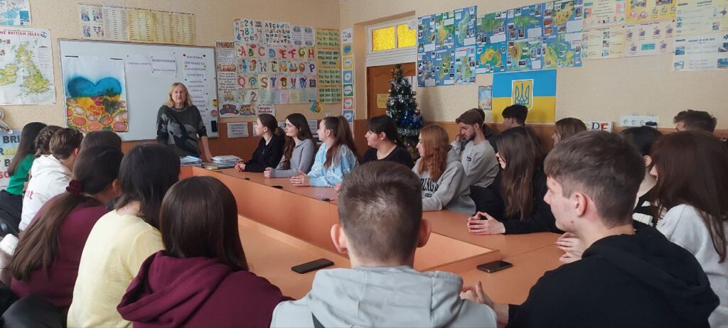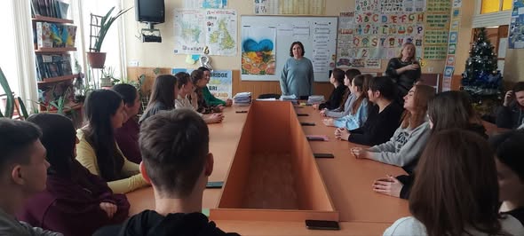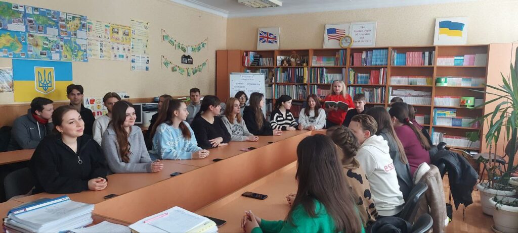 Студенти 3 курсу ОПП Початкова освіта під час проведення пробних уроків англійської мови у Прилуцькому ліцеї 6 демонструють свої уміння з теми “Розвиток мовленнєвої компетентності з використанням асоціативних символів у навчанні іноземних мов”