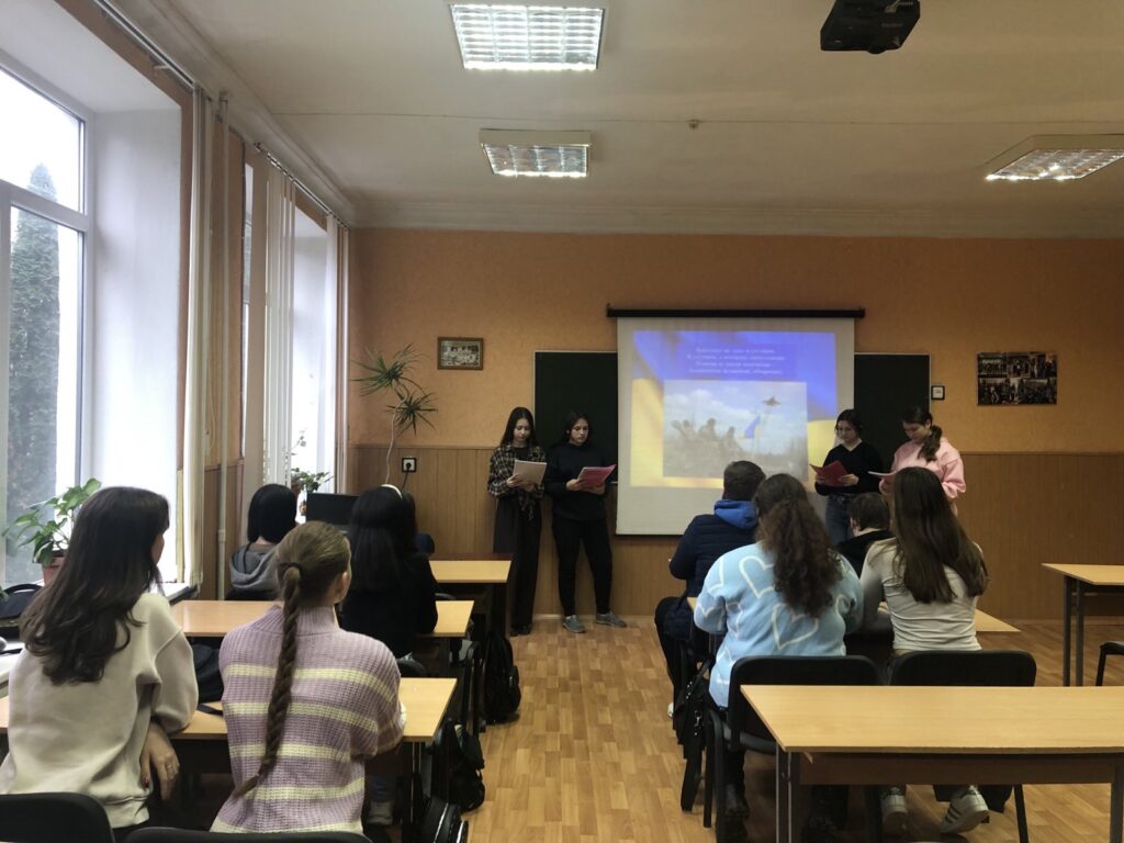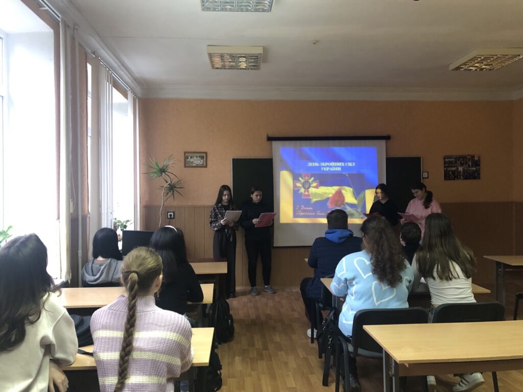 4 грудня 2025 року у 21 групі спеціальності 013 Початкова освіта (куратор Сидоріна О.В.) відбулася виховна година з нагоди Дня Збройних сил України. Студенти підготували історичні матеріали, що демонструють безперервність традиції боротьби за свободу та державність українського війська. Згадали героїв усіх часів від минулого до сьогоднішніх днів. Обговорюючи історичні періоди, пов’язані з боротьбою нашого народу за свободу, студенти наголосили, що 2014 рік став перевіркою на мужність, витривалість, вірність Військовій присязі та відданість Україні в умовах війни, яку розв’язали росіяни. Крім цього, зазначили, що цей рік увійшов в історію як момент відродження української армії, бо ЗСУ вступили в реальні бойові дії з ворогом. У боях за незалежність і територіальну цілісність України тисячі бійців проявили себе героїчно. Такі виховні заходи формують у молоді відчуття гордості за військову спадщину й усвідомлення, що сучасна боротьба є продовженням багатовікової історії опору українців проти московитів.